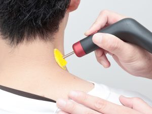 ハイボルテージは瞬間的に高い電圧を流す事で関節や靭帯、神経などの深部の組織にアプローチできる治療で疼痛の緩和や血行の促進に効果的です。
